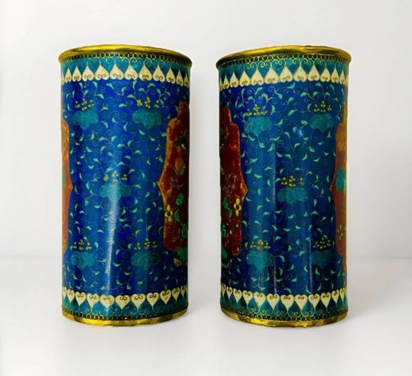 A Fine Pair Of Meiji Cylindrical in the manner of Namikawa Yasuyuki.